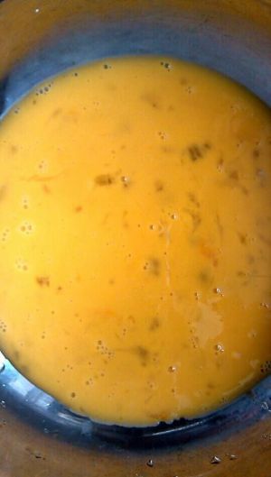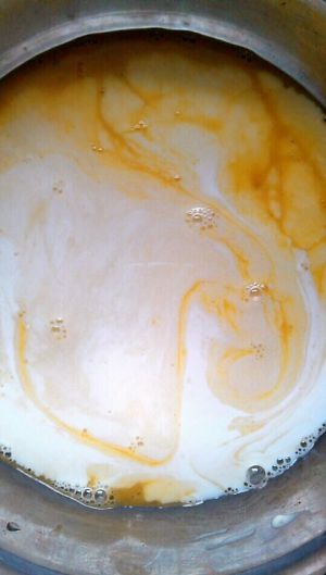 加入适量牛奶,搅匀;再加入盐、糖、味精,搅匀
