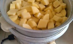 首先,土豆洗净放碗里蒸熟,(我没这么多,只不过蒸的多了点罢了)