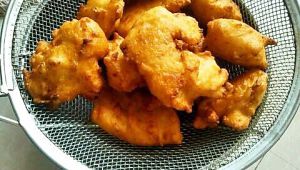 揉好后用小勺子舀成一坨一坨的放入油锅,用小火慢慢炸