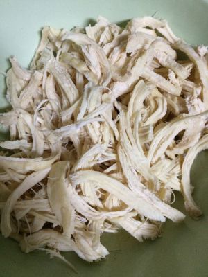 鸡胸肉煮熟,黄瓜,葱切丝。