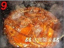 大火煮开后转小火,焖至酱汁快干的时候,加入2大汤匙的冰梅酱,继续小火焖10分钟