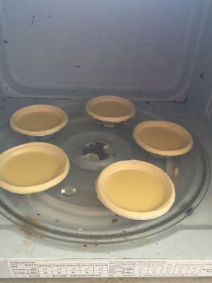 蛋挞液倒入蛋挞皮中,八分满,烤箱180度烤20分钟