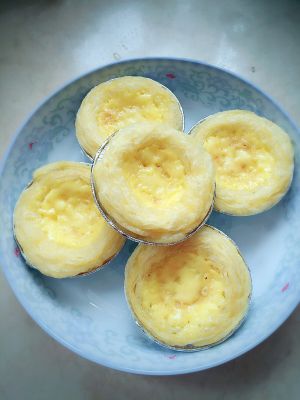 出锅 第一次烤蛋挞 成功✌表面不是很平滑 可能是因为没有过筛 追求完美的可以筛一遍再烤