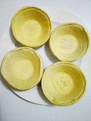 准备好蛋挞皮。我买的是成品的蛋挞皮。