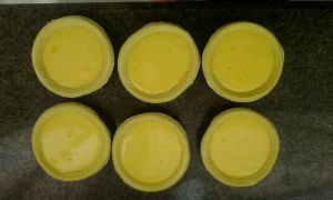 过滤好的奶液倒入挞皮中,8分满(奶液一定要过筛,有什么小疙瘩会影响口感)