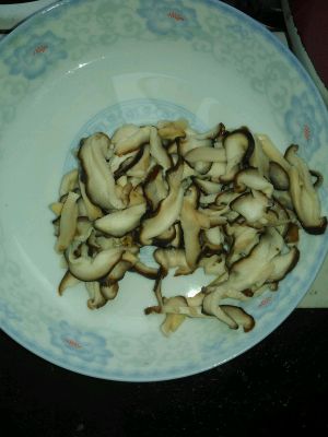 香菇泡发后,锅中倒入油加热,放香菇,加盐翻炒。