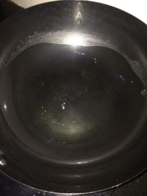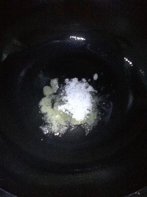 油温热后放入白糖,炒制白糖融化成黄色。