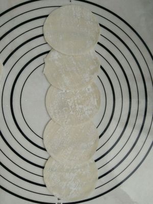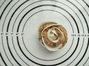 把菜肉调料等都调好,面揉成髻子再擀成薄片,开包。