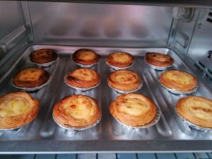 6、放入蛋挞,先下火200度烤20分钟,再上下火烤15分钟即可。