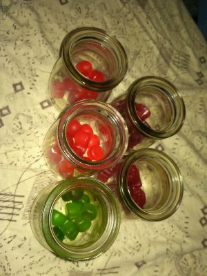 小编的瓶子是网购的,五十毫升小瓶,一瓶一袋软糖,不喜欢吃甜的可以少放。。。。