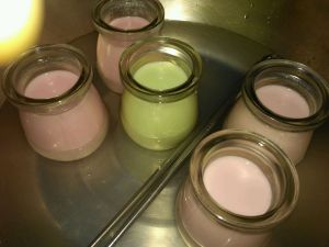 先把清水烧开,再加入3小勺粉,搅拌均匀,分三份倒入三个布丁杯中,放入冰箱冷却至凝固,再做第二种口味,依此类摧,三种颜色都凝固完成就做好了。