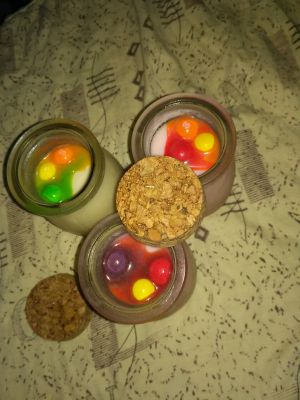 倒进玻璃瓶里放冰箱冷冻室十分钟左右,凝固就拿出来,再微波炉转别的颜色,加牛奶搅拌,(同上操作,以此类推)
