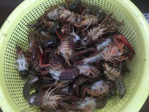 首先是清洗收拾小龙虾,在虾的后用小刀切开,将虾的胃部取出;再用将虾尾部拧断抽出虾肠。然后再将小龙虾清洗干净,控净水分。