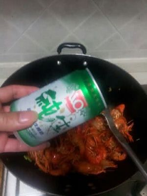 炒香后倒入两罐啤酒,没过虾就好了,煮开以后加适量鸡精