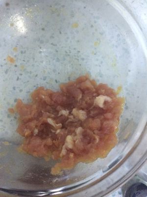 肉切碎,加料酒加盐加姜丝腌制