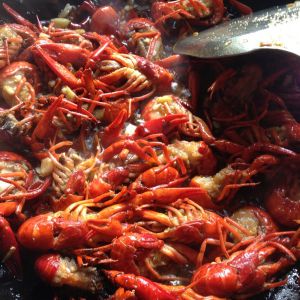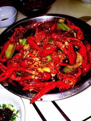 锅热油将切好的姜蒜辣椒放入热锅里爆炒炒香,在倒入洗好的小龙虾加1勺盐、料酒、味精、豆瓣酱翻炒5分钟,加入二碗清水焖煮10分钟即可出锅食用