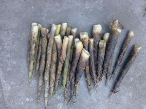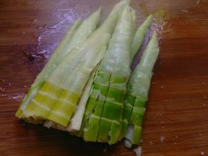 新鲜竹笋戴手套剥皮洗净切梳子状