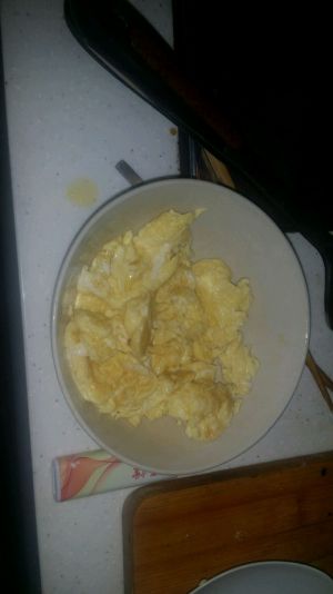 八分熟基本凝固以后,把鸡蛋盛出来,让他们享受一下最后的清新空气,马上要跟韭菜君见面了