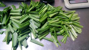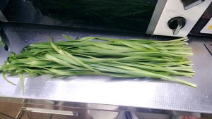 首先韭菜一定要洗干净,特别这种土特别多的,如果有时间,一定要用清水泡一会~看看我洗完的韭菜,有一种刚洗完我飘逸的长发的感觉,我还在想用不用拧一把用毛巾擦擦~