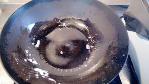 好了,现在锅里重新倒油,也不要太多哦,少少的哦~别在意我没刷锅那些细节,本来就是一盘菜,为什么要刷呢,哈哈哈哈哈哈