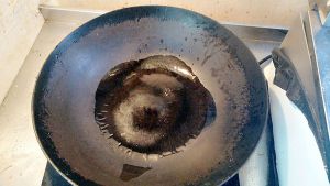 锅里放油烧热,看看看,我的便宜锅又跟大家见面了,油不要太多,够炒鸡蛋就好,后面还会再放,
