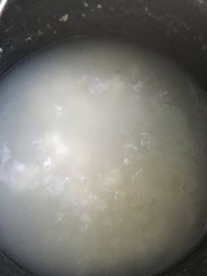 米加水用大火煮开后关火闷30分钟!再开大火煮沸搅拌,粥是越拌越稠的!煮沸后煮5分钟!关火!