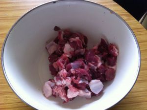 将羊肉切成块,用盐和鸡精腌制1小时以上