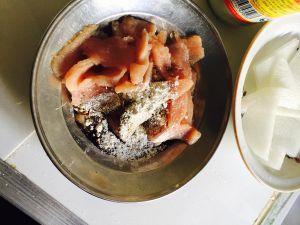 放十三香,酱油,料酒,淀粉,腌制里脊肉