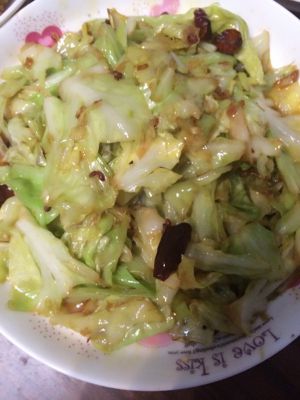 锅内放油,油热后加葱姜,小米辣,倒入包菜,放入半勺味达美,翻炒,出锅前加耗油即可