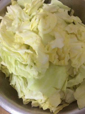 第一步:将包菜整个清洗后,用手撕成一块一块备用