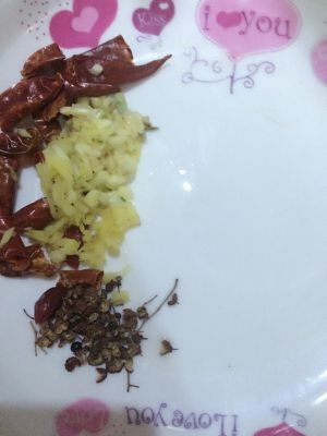 第二步:准备好佐料葱,姜,蒜,干辣椒,花椒粒