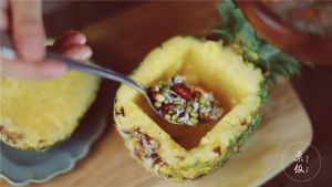把炒好的菠萝饭放进菠萝里