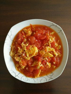 倒入西红柿翻炒到半熟出汤,加少许糖提鲜,然后倒入鸡蛋翻炒,加少许盐,带翻炒入味后,将蒜末撒入,小火翻炒两下出锅。