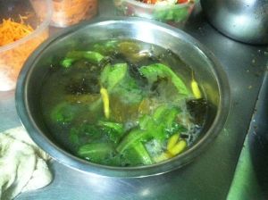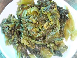 下面就是找锅烧好水,然后把酸菜放进去悼水一两分钟后迅速找漏勺盛出。