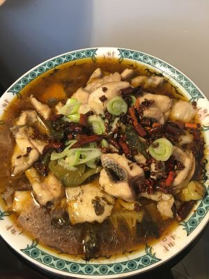 鱼上放上切好的葱片,浇上热油,香喷喷的酸菜鱼就做好啦!