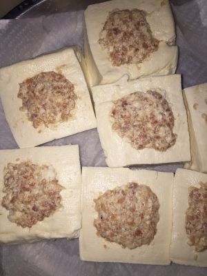 猪肉剁成泥,葱去根洗净,切成碎未,香菇去蒂洗净,挤干水份,剁成泥,将猪肉泥鱼胶加香菇泥,葱未,淀粉,盐,酱油,胡椒粉搅成胶状馅,