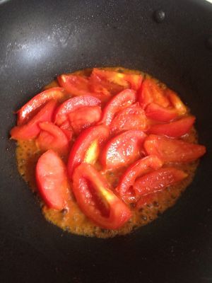 倒入西红柿块翻炒。