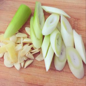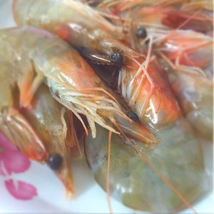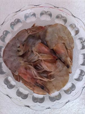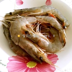 青虾去泥线,葱一根(大点的),姜一块(多点去辛味),将虾去泥线后背部切开(更入味)