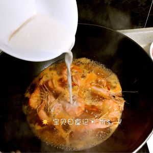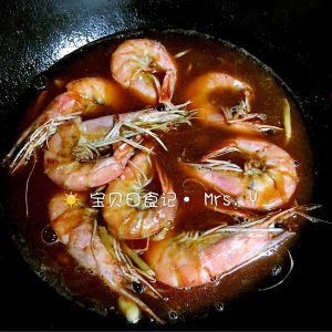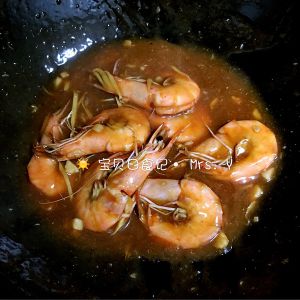 锅底留油,倒入葱姜蒜煸香。倒入之前拌好的佐料,炒均匀,加入大虾,翻炒均匀。再加少量料酒。盖锅焖30秒。出锅!