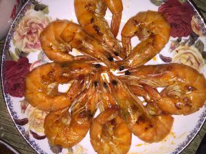 起锅倒油爆香姜片和蒜片,倒入大虾小火煎出虾油,倒少许料酒盖锅盖闷40秒 开盖倒入葱,生抽,醋(少许),胡椒粉(少许),番茄酱(根据自己口味放),糖,盐炒匀,加半碗水大火收汁即可