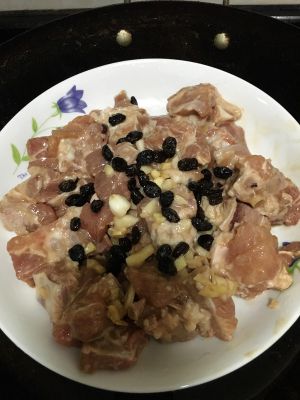 然后把洗净的豆豉和腌好的排骨一起拌匀放到高压锅里。