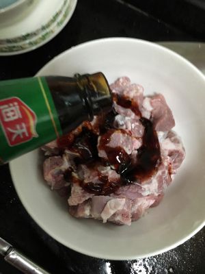 我静置了一个小时,然后取出来,撒上生粉,加点生抽,然后搅拌均匀。加了生抽蒸出来的排骨就有点颜色,不会是白白的。