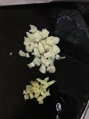 把刚才的姜蒜放进去,再加少许盐。喜欢吃辣的,这时候也可以加入指天椒或者辣椒酱。