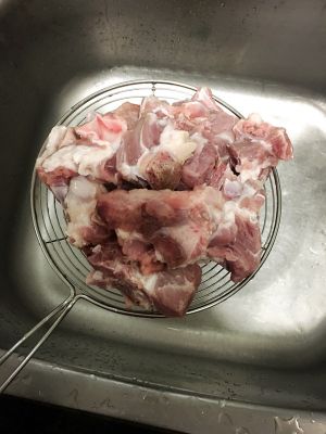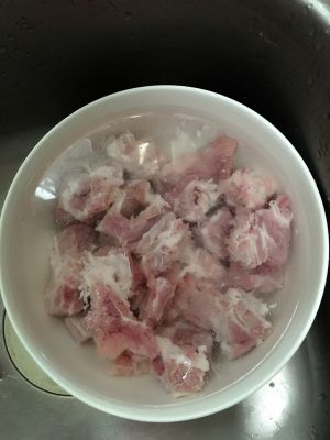 我时间很充裕,所以腌了三个小时。把排骨取出来,用清水冲洗两三遍,然后用清水泡一下,一般五分钟。我是每次都多洗几次,我不喜欢太甜。