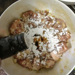 加入酱油、生抽、白糖、豆豉、和水淀粉拌匀腌制1小时以上