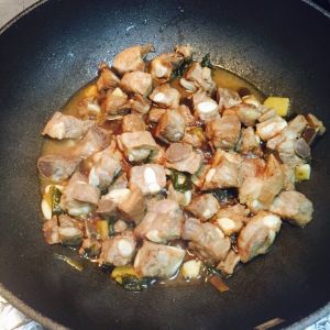 继续翻炒,大火烧开后转小火,盖上盖子,等汁不多的时候大火收汁 出锅前可以少加点醋