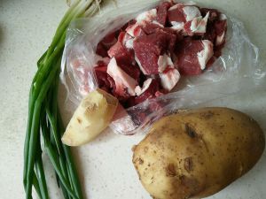 牛肉焯水洗净,土豆切块,葱姜洗净切好!