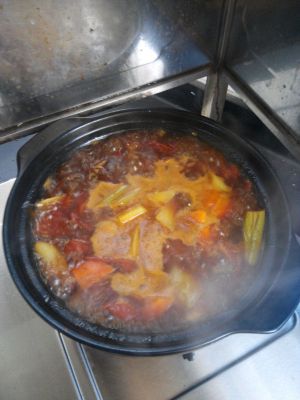 大概5分钟,汤汁沸腾后加入牛肉,小火慢炖15分钟。最后加入少许盐,大火滚开,就大功告成!