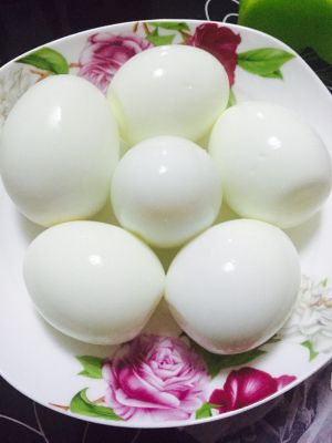 将鸡蛋煮5分钟,煮熟后剥开~(煮熟后将鸡蛋放在凉水里放一会儿,这样很好剥,而且蛋壳不会粘住鸡蛋)