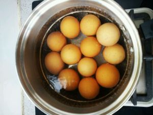 加水开火慢慢煮至鸡蛋上色